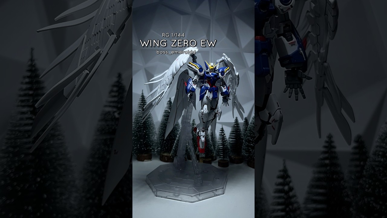 Real Grade 1/144 Wing Zero EW custom build highlighting the iconic angel wings, sharp color separation, and a clean, display-ready finish.