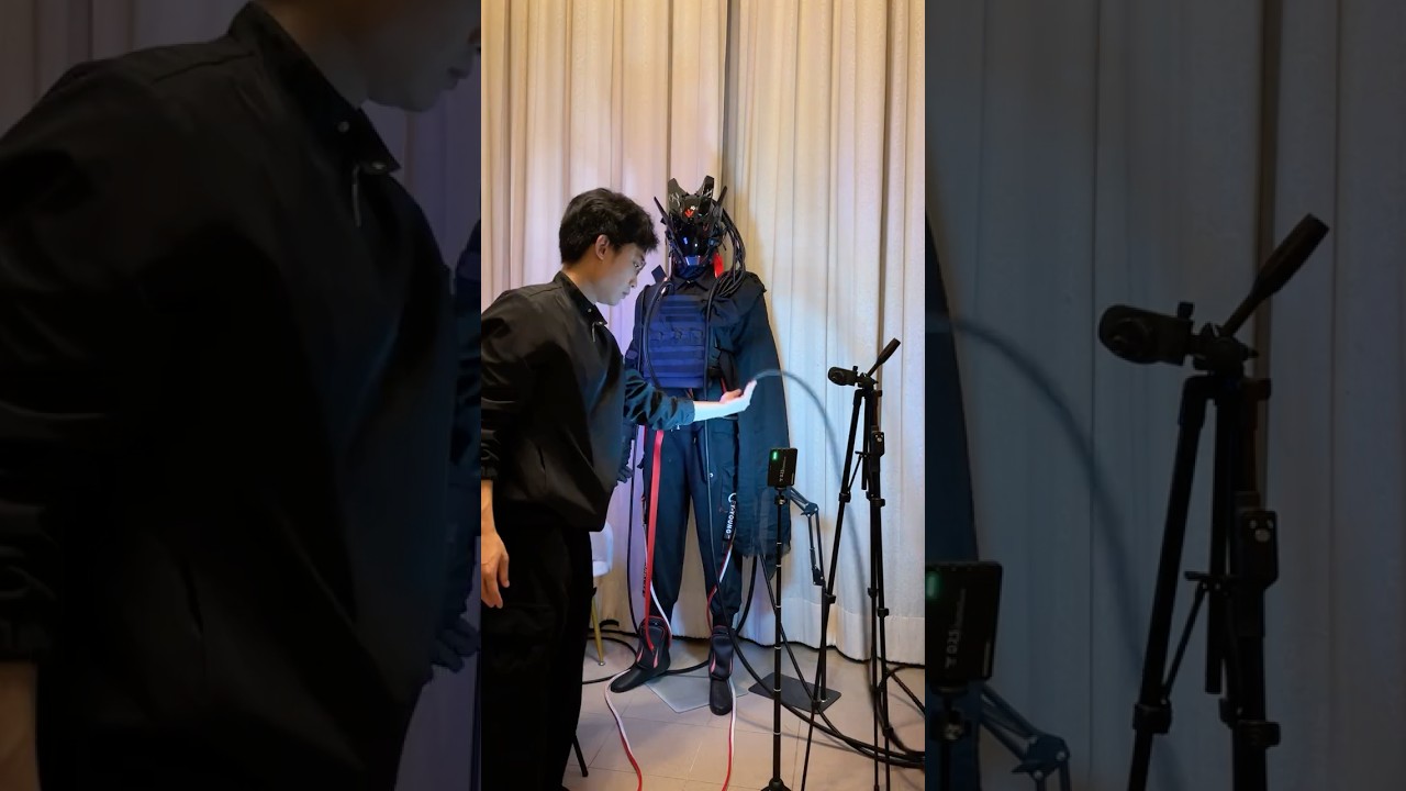 Full-scale cyberpunk prototype unit featuring a custom-built helmet, exposed cables, and layered materials. Designed and assembled as a wearable experimental figure.